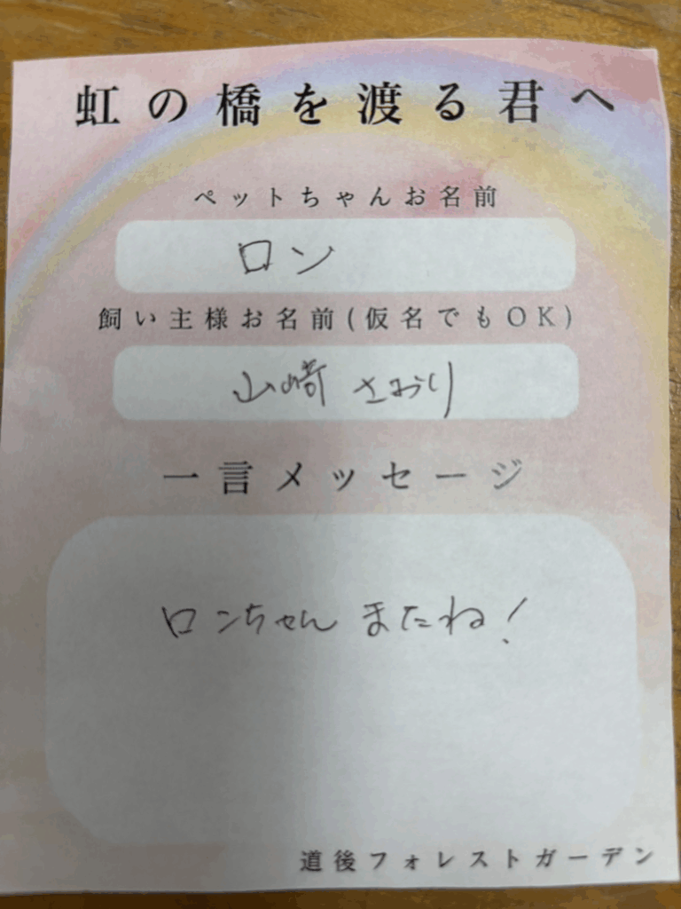 虹の橋を渡る君へ(飼い主様からのメッセージ)