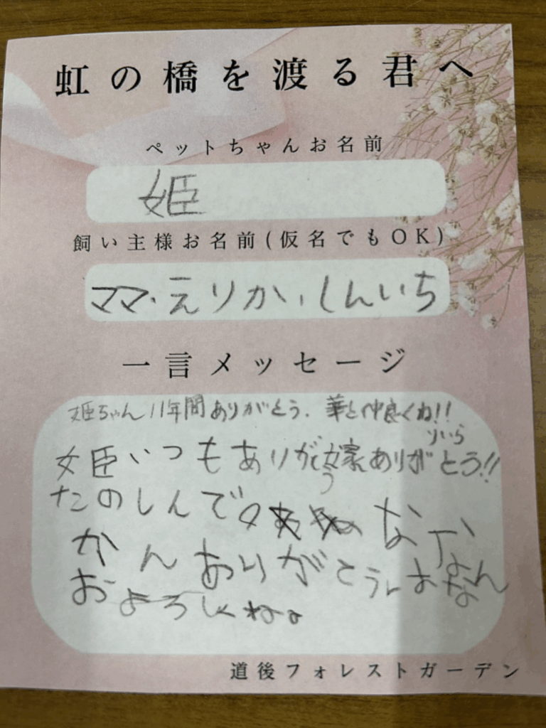 虹の橋を渡る君へ(飼い主様からのメッセージ)