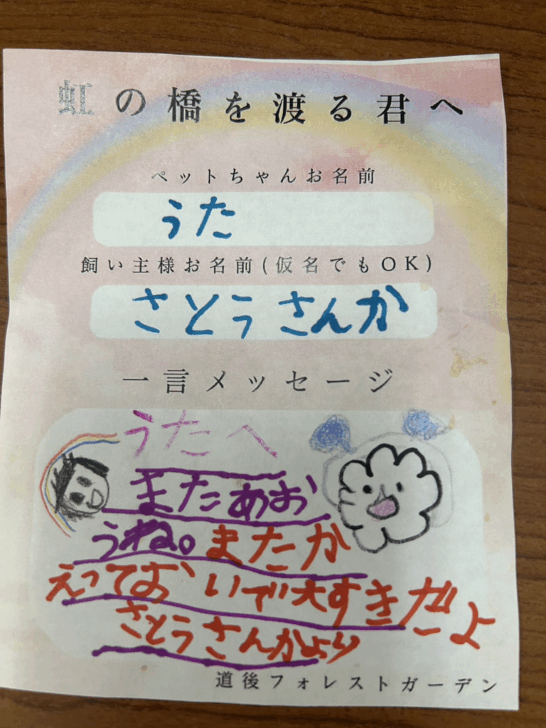 虹の橋を渡る君へ(飼い主様からのメッセージ)