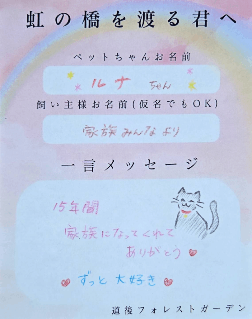 虹の橋を渡る君へ(飼い主様からのメッセージ)