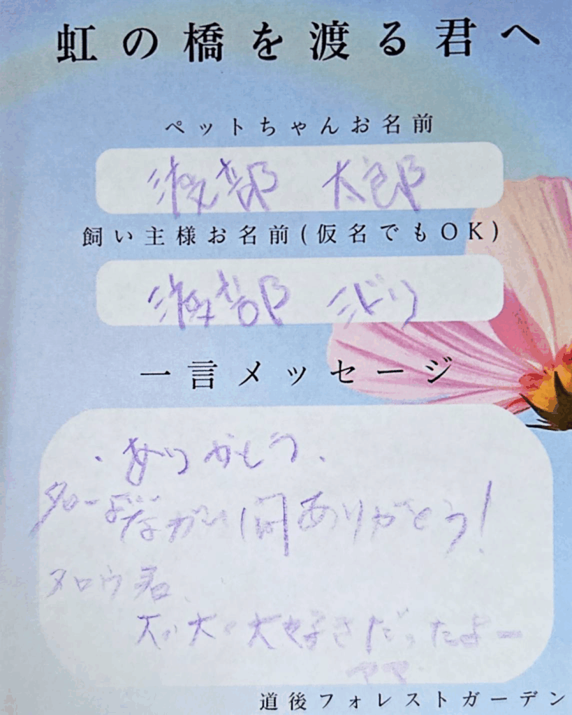 虹の橋を渡る君へ(飼い主様からのメッセージ)