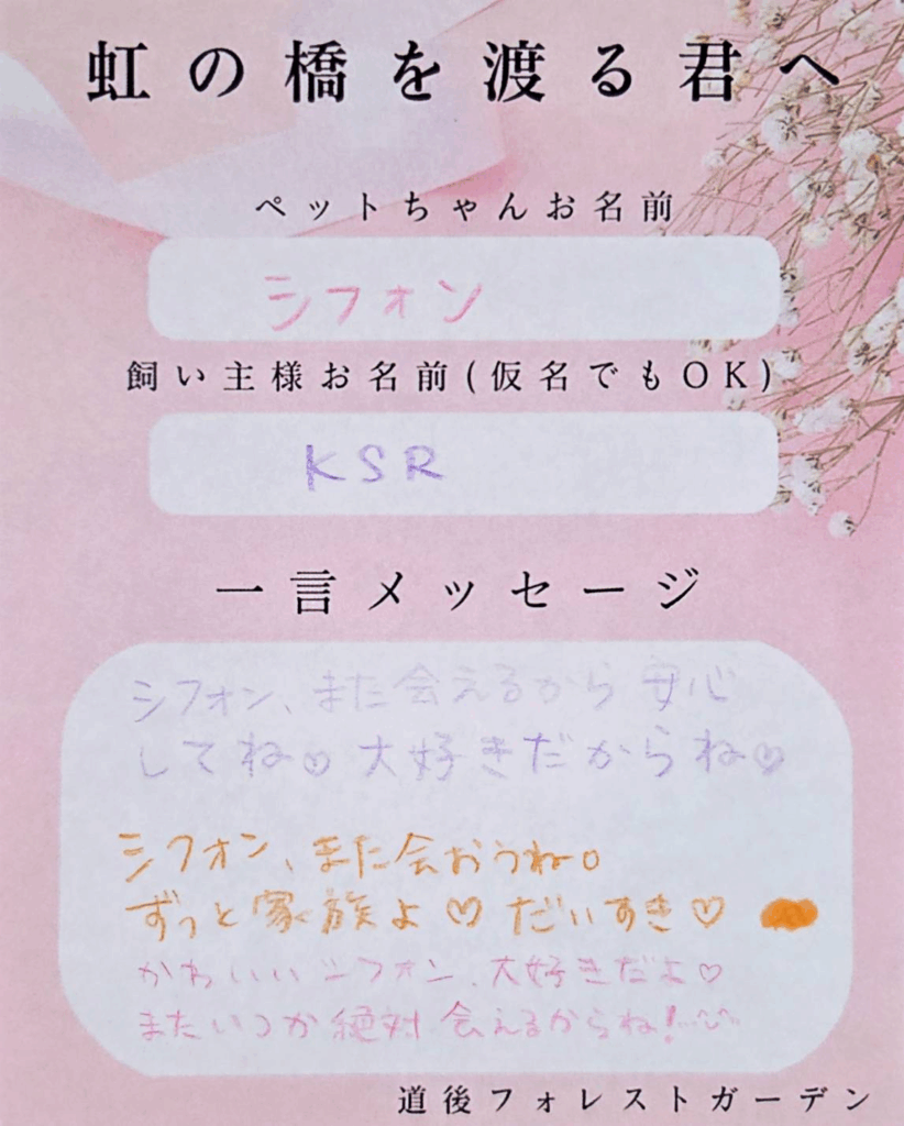 シフォン、またあおうね。ずっとお家族よ💕だいすき💕