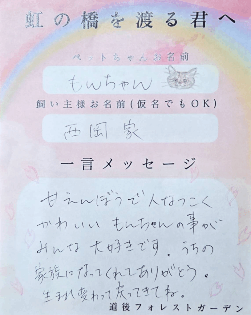 甘えんぼうで人なつこくかわいいもんちゃんの事がみんな大好きです。